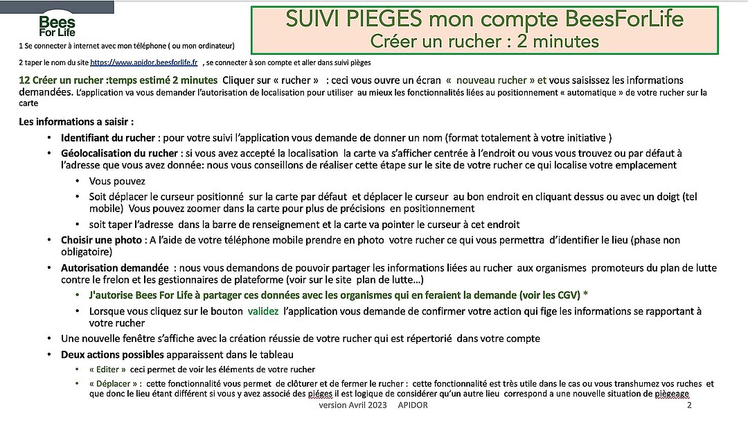 you will be able to access the forms for declaring your traps and apiaries and you can already enter your records.